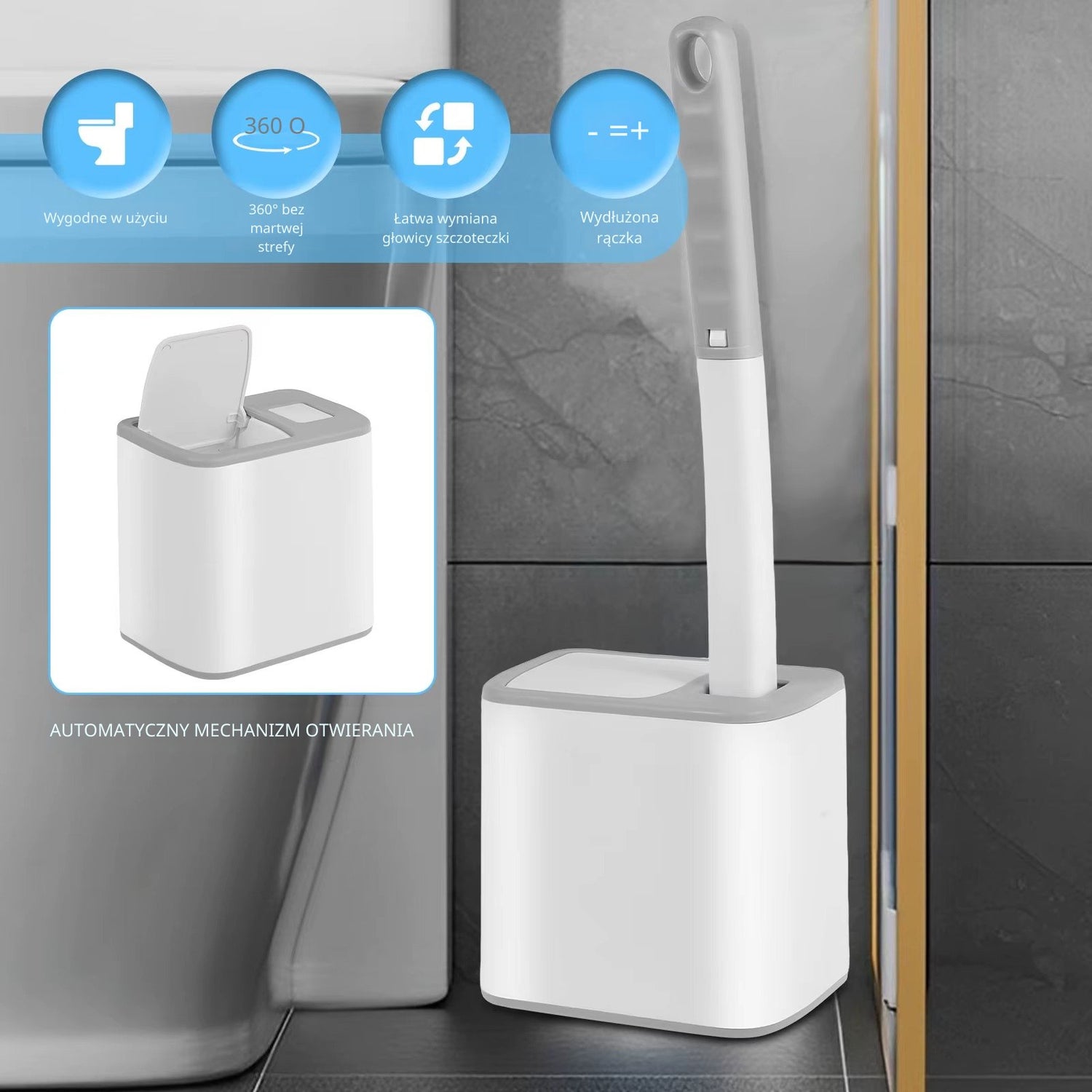 Nasza szczotka posiada automatyczny mechanizm otwierania, obrotową głowicę 360° oraz wymienne wkłady czyszczące, które zapewniają maksymalną higienę i komfort użytkowania.